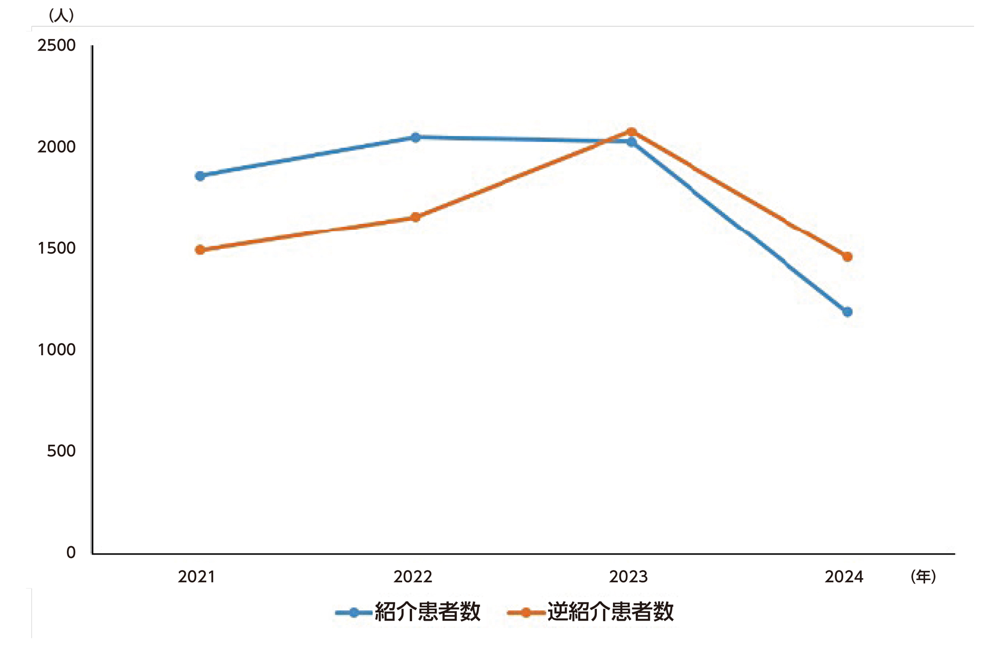 図1. 年度別の紹介患者数と逆紹介患者数の推移