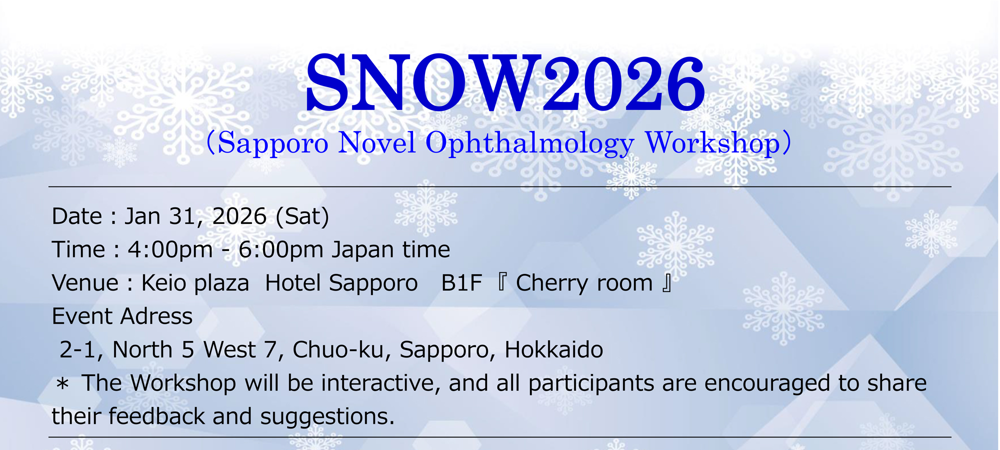 | SNOW (Sapporo Novel Ophthalmology Workshop) 2026 |