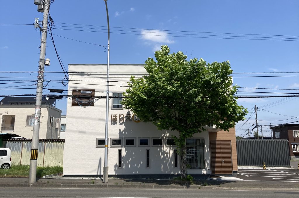 2023年5月に千歳市内の旧国道36号線中央大通に面した地に開院しました。クリニックの前にある大きな街路樹によって建物の半分がかくれていますが(Fig1)、近くにあるスターバックスが場所を説明するのに役立っています。開院日を振り返ると、前日が一番つらかったことを思い出します。いろいろなことを想定し妄想し準備をしていましたが、納品に1か月以上かかるものもあり、そろわない物がたくさんありました。またスタッフも眼科未経験者ばかりでしたので準備も完璧にできていたわけではなくドキドキしました。しかしオープンしてみると意外と患者さんが来ない、注射もしない、点滴もしない、ガーゼもいらない、細かい物品はなくても全然大丈夫、ということがわかりゆっくり眠れたことを思い出します。
