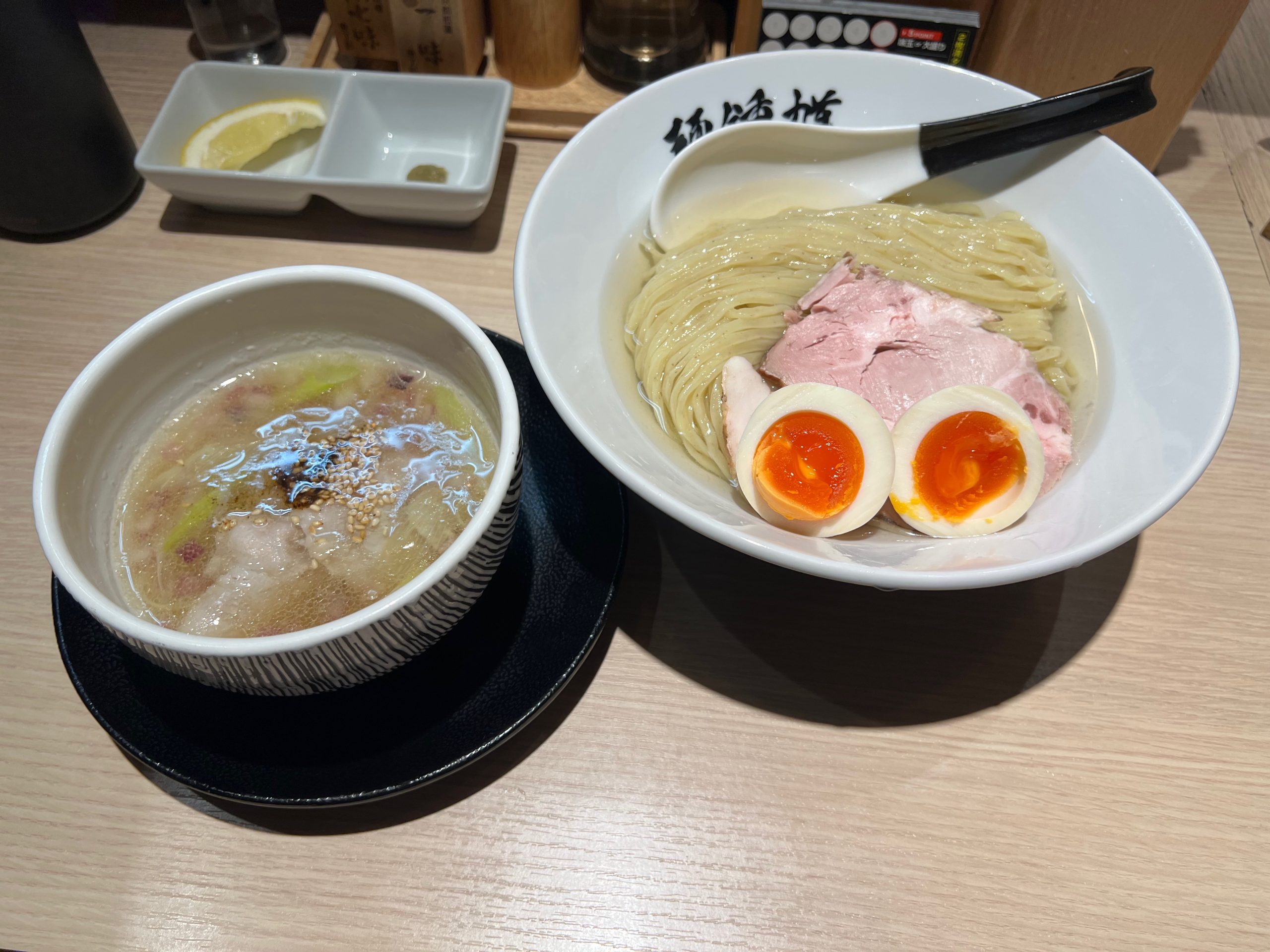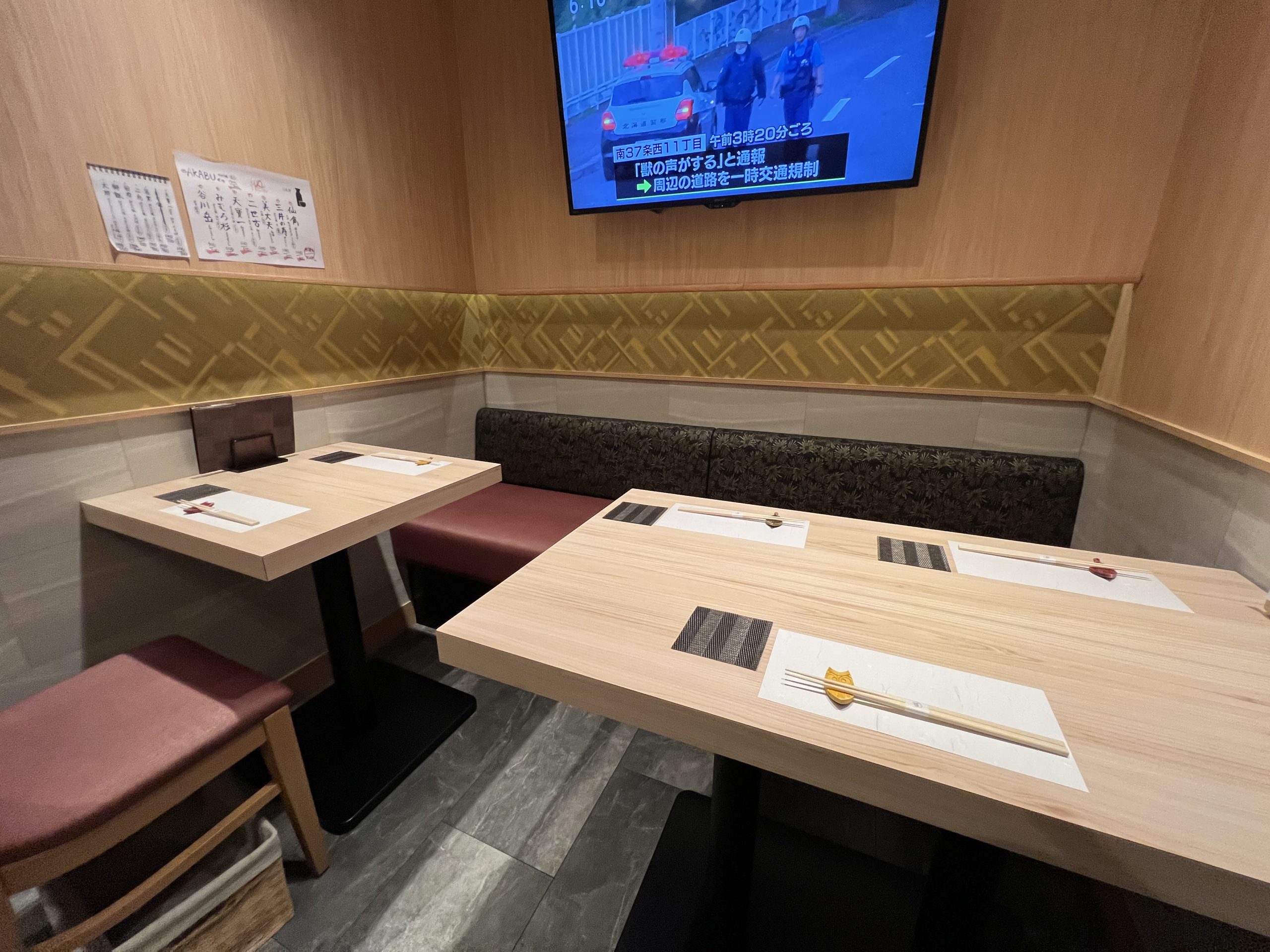 新店舗は白壁と木を使った落ち着いた大人の雰囲気となった。入ってすぐ手前にカウンター席と奥にテーブル席が3つあり、そのうちの一つは角の半個室である