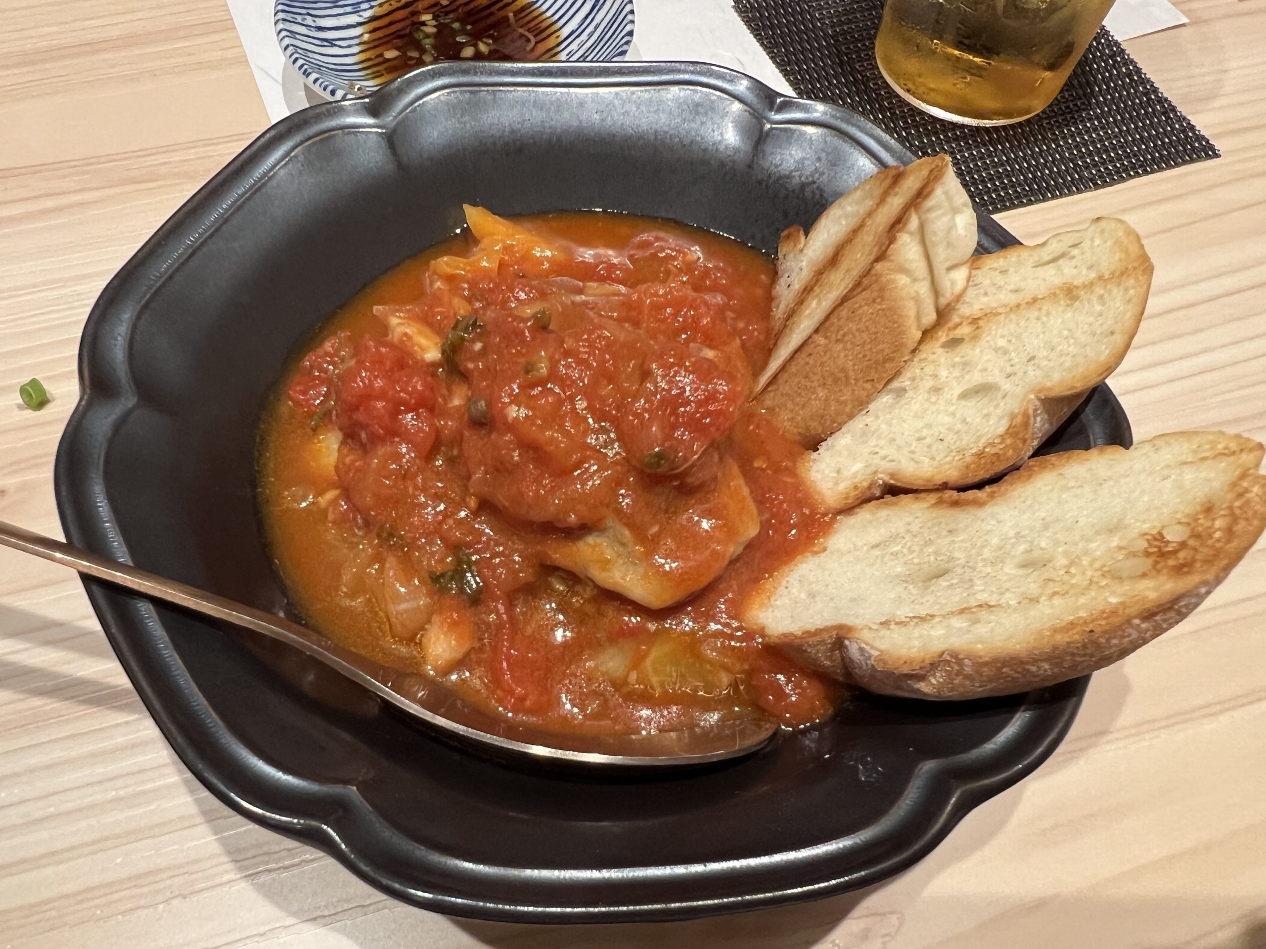 合間に出されたバゲットは温められておらず、皮目がパリッとしていなかったのが残念だった