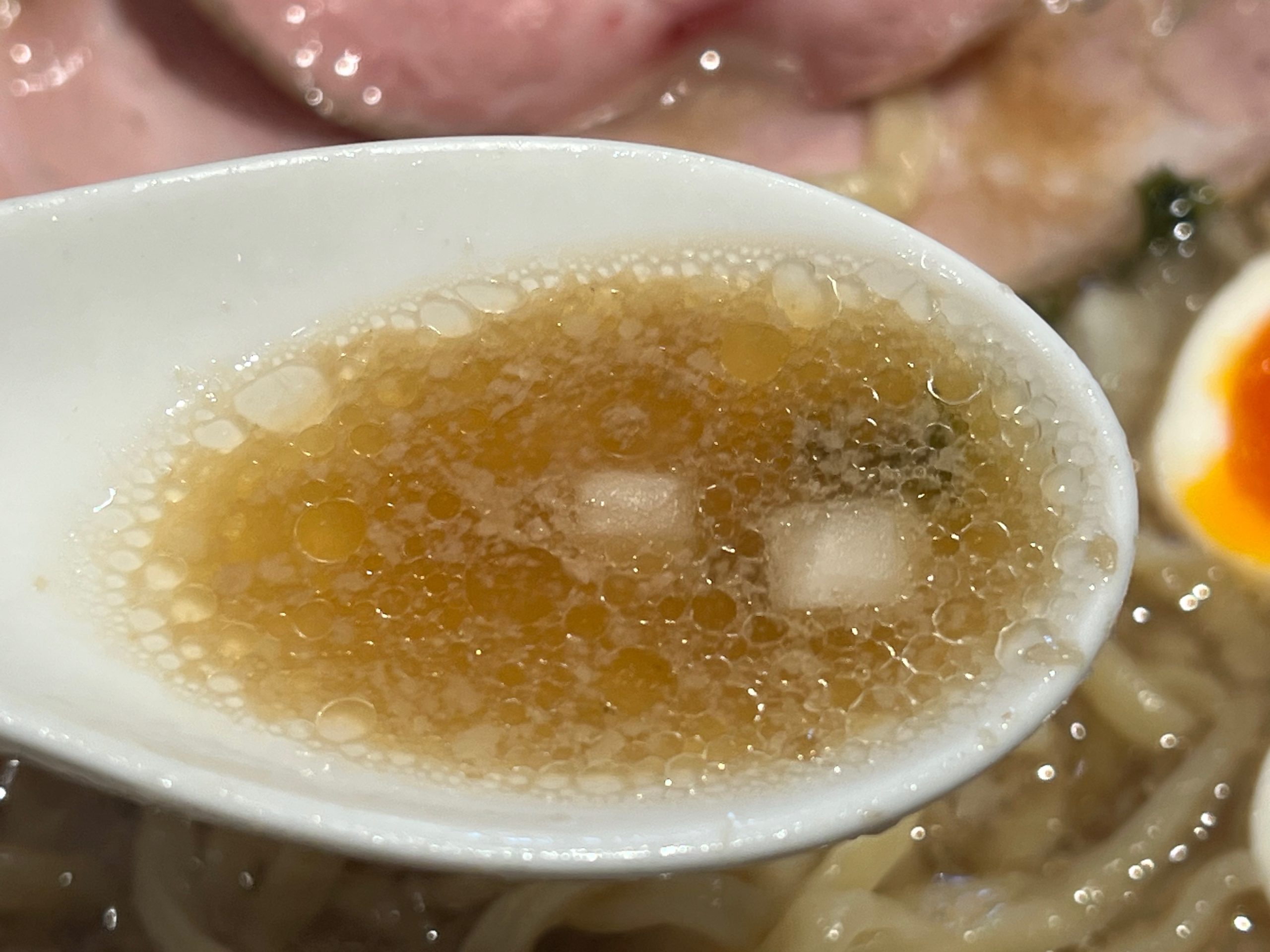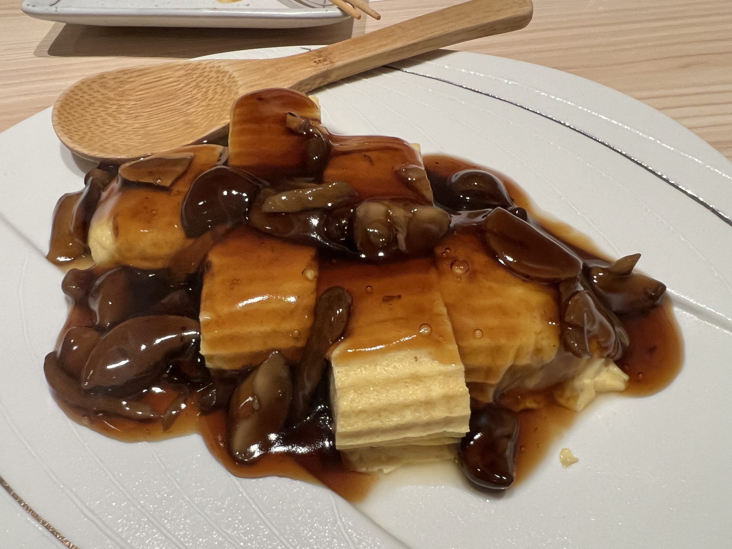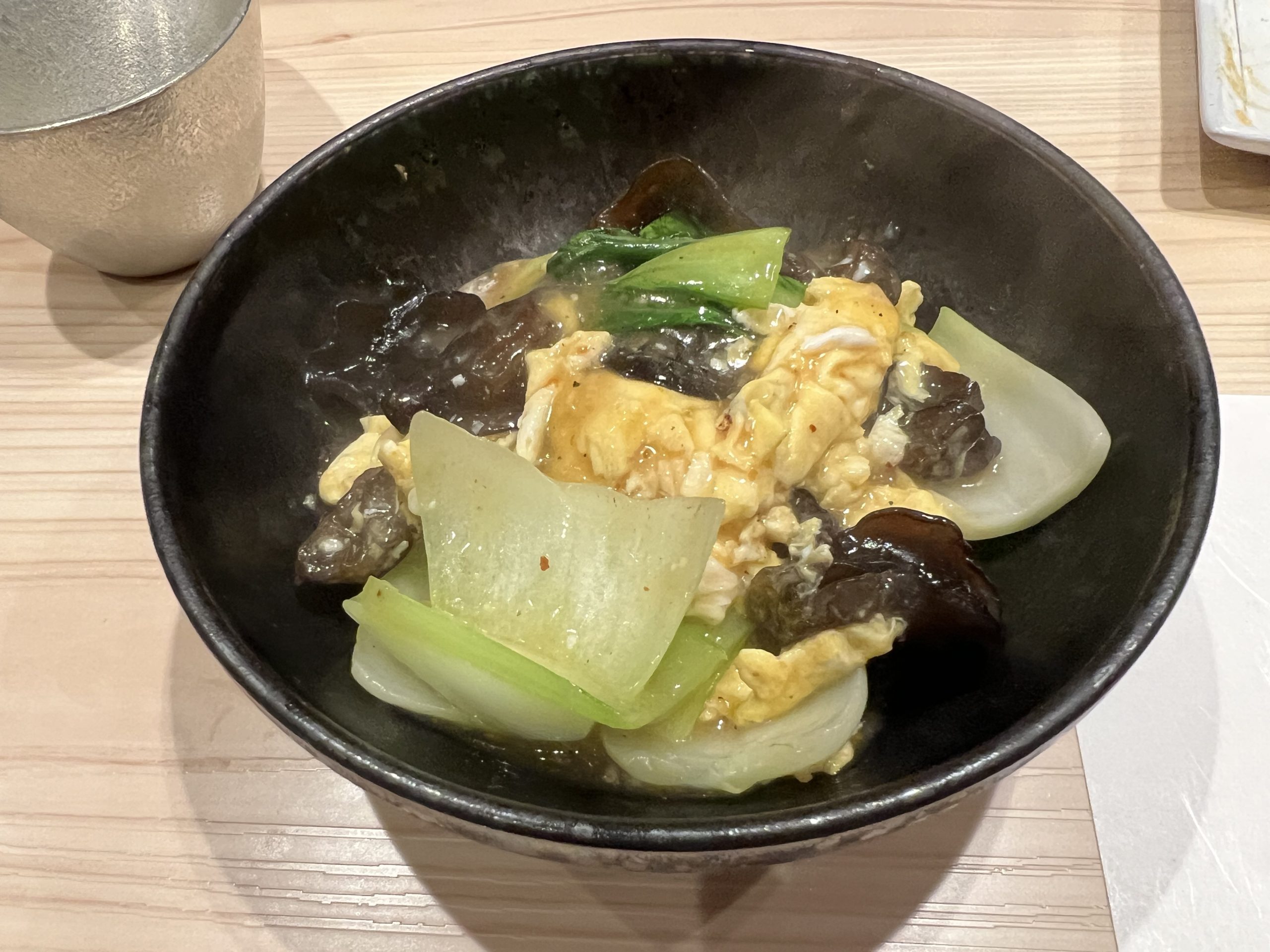 太いミズダコの足は弾力があるものの、比較的柔らかく調理されている。また、春菊の香りが抑えられているので、タコの香りが感じられる