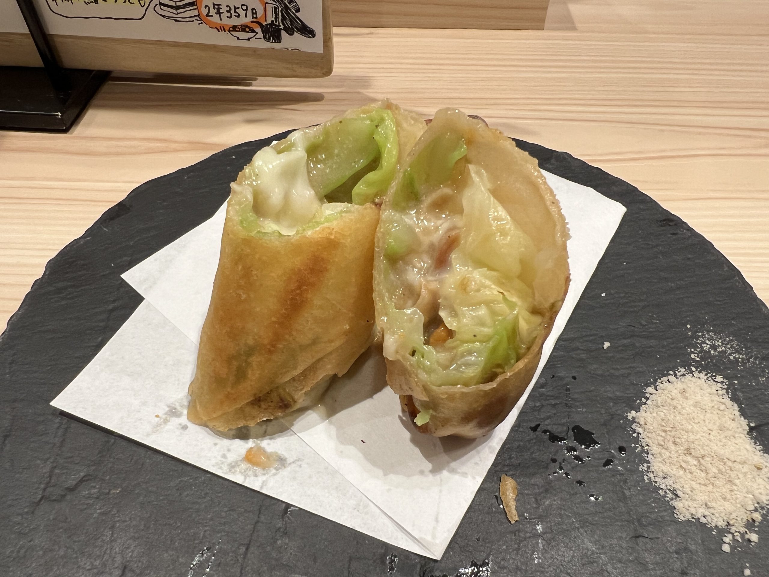 穴子は醤油と味醂で味付けされた煮穴子で、これに大葉や甘いご飯が加わる。ミスマッチかと思いきや、これが意外にも美味しかった