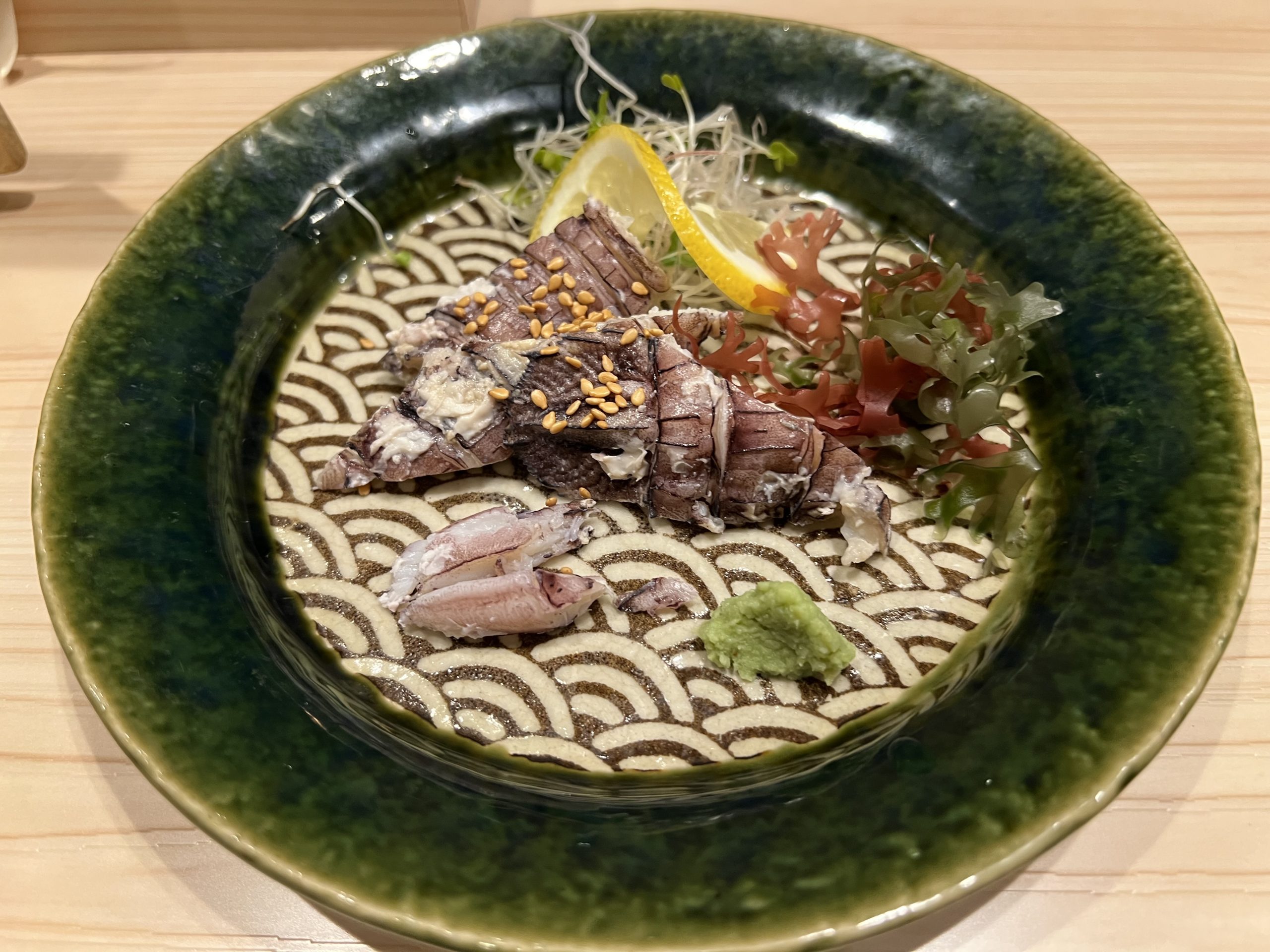 コースは7500円、10000円、15000円の3コースで、今回はメインに「ふらの和牛フィレ肉」が入った15000円のコースをチョイス。最初に出てきた1皿目は「利尻産北ムラサキウニのカナッペ」。乾燥した自家製ブリオッシュの上に、生ウニと擦ったニセコチーズ工房のラクレットとトマトウニソースがのっていた。2皿目は、この店のスペシャリティである「(北海道産)お野菜のテリーヌ」。温野菜の歯応えと甘みを感じる。適度な酸味のソースとの相性も絶妙で、野菜の魅力を最大限に引き出していた。3皿目は「噴火湾産水蛸のコンフィ 芦別産春菊のバターソース」。太いミズダコの足は弾力があるものの、比較的柔らかく調理されていた。また、春菊の香りが抑えられていたので、タコの香りが感じられた。合間に出されたバゲットは温められておらず、皮目がパリッとしていなかったのが残念だった。4皿目は「噴火湾産穴子のビネガーソース」。穴子は醤油と味醂で味付けされた和風の煮穴子で、これに大葉や甘いご飯が加わる。ミスマッチかと思いきや、これが意外にも美味しかった。5皿目は「島牧産石鯛のポワレ デュグレレソース」。皮目がパリッと焼かれ、身はしっとりとしていた。トマト風味のデュグレレソースは塩味ピッタリでコクがあった。メインとなる6皿目は「ふらの和牛フィレ肉のグリル」。フォンドボーを使った山椒風味のソースはバランスが良く、ふらの和牛フィレ肉の火の通し方も申し分なかった。最後の一皿はチーズかデザートを選べるが、僕はデザートの方を選択。この日のデザートは、「カシスのムース」か「グレープフルーツのゼリー寄せ」で、その後、飲み物と小菓子が出されて終了となった。