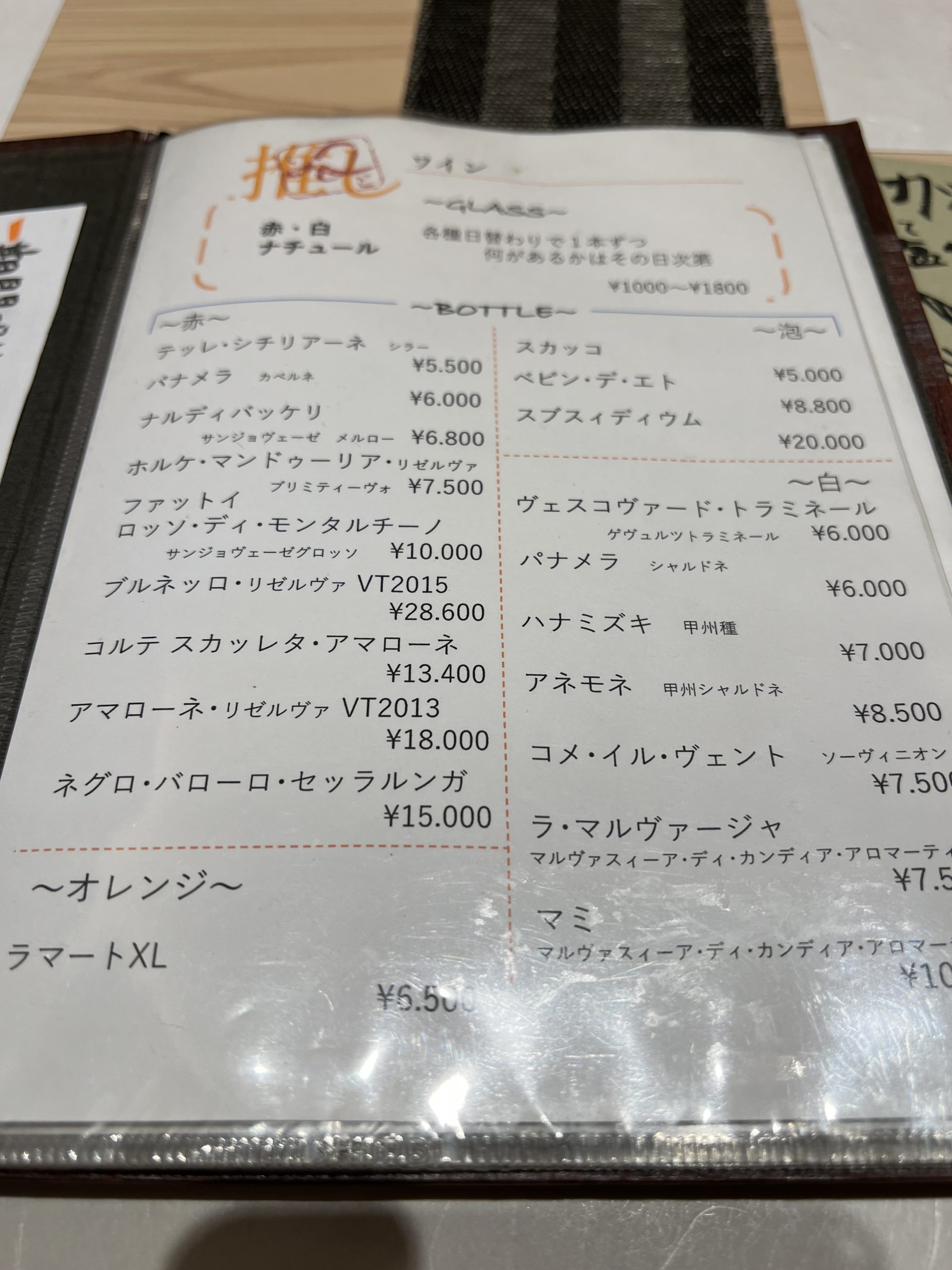 予算:【コース】7500円、10000円、15000円、【20時半からのアラカルトメニュー】鶏レバーペースト・ビストログランメール風(1枚)300円、お野菜のテリーヌ3000円、鶏砂肝のコンフィ900円、厚田望来豚肩ロースのロティ(250g)温野菜添え4000円