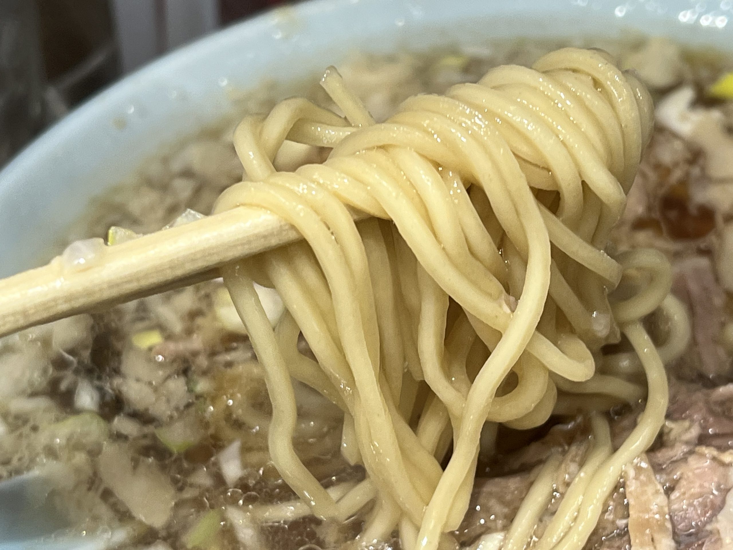 歯にくっつくような独特の食感の細麺が良くない