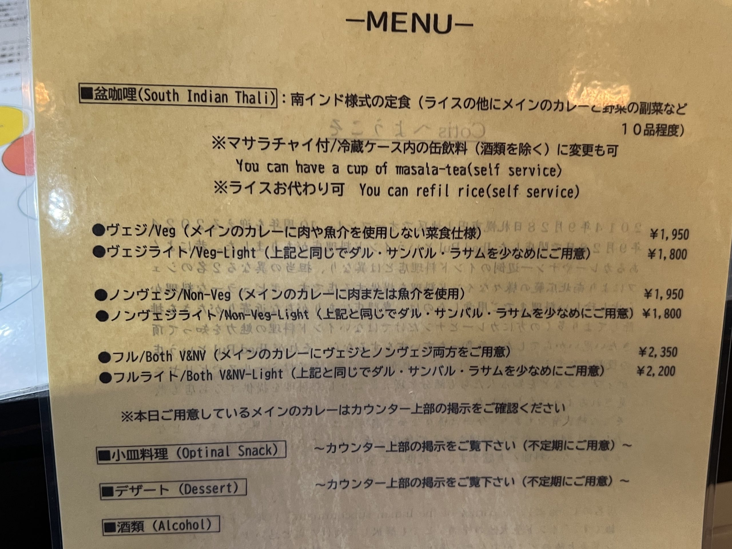 メニュー(スープカリーメニュー)