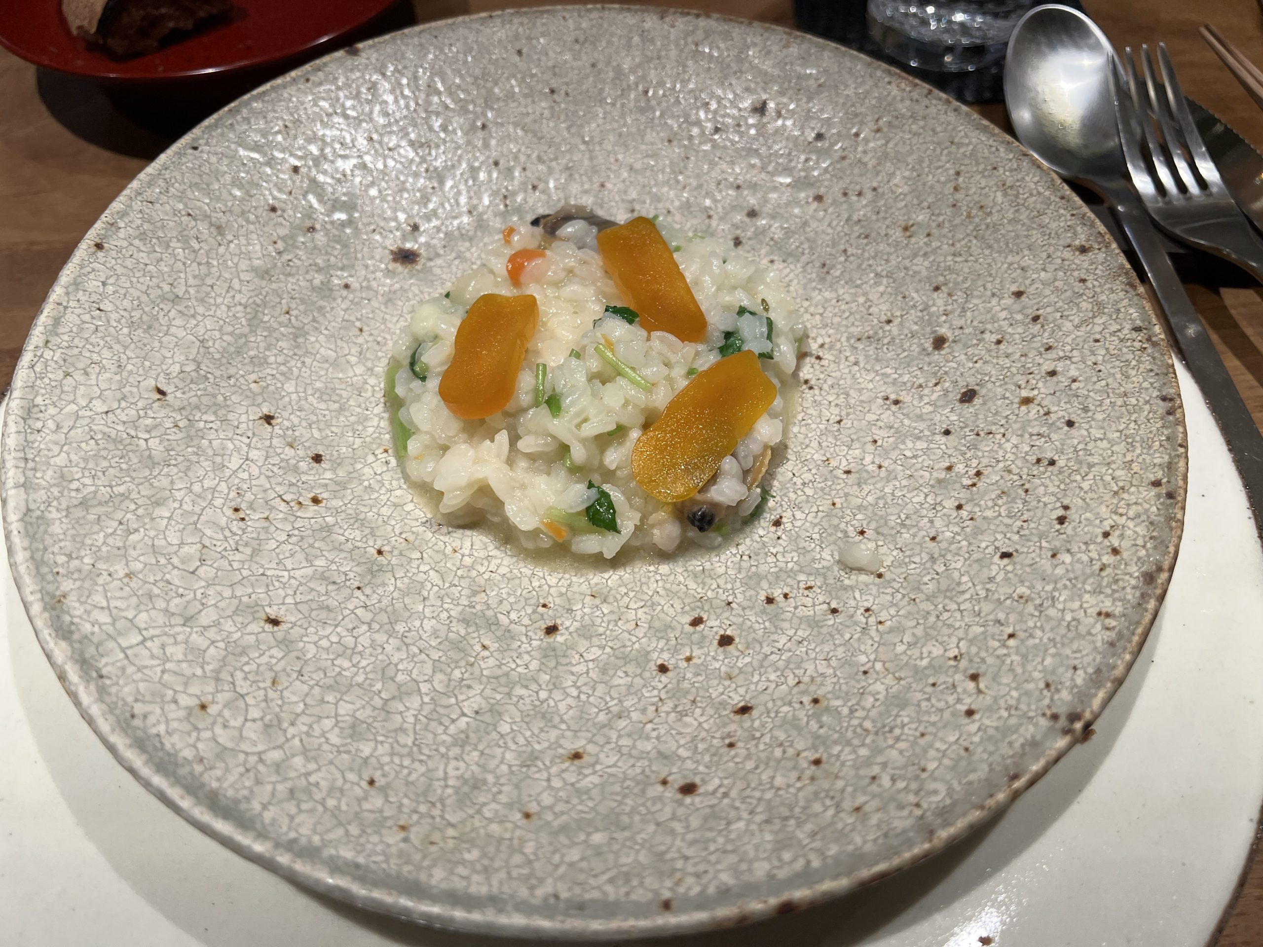 「厚岸のアサリと昆布だしのリゾット」