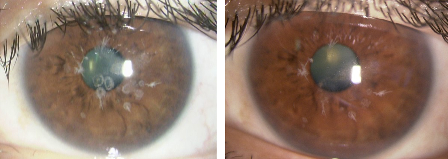 (治療前) 顆粒状角膜ジストロフィに対して電気分解を行った一例 (治療後)